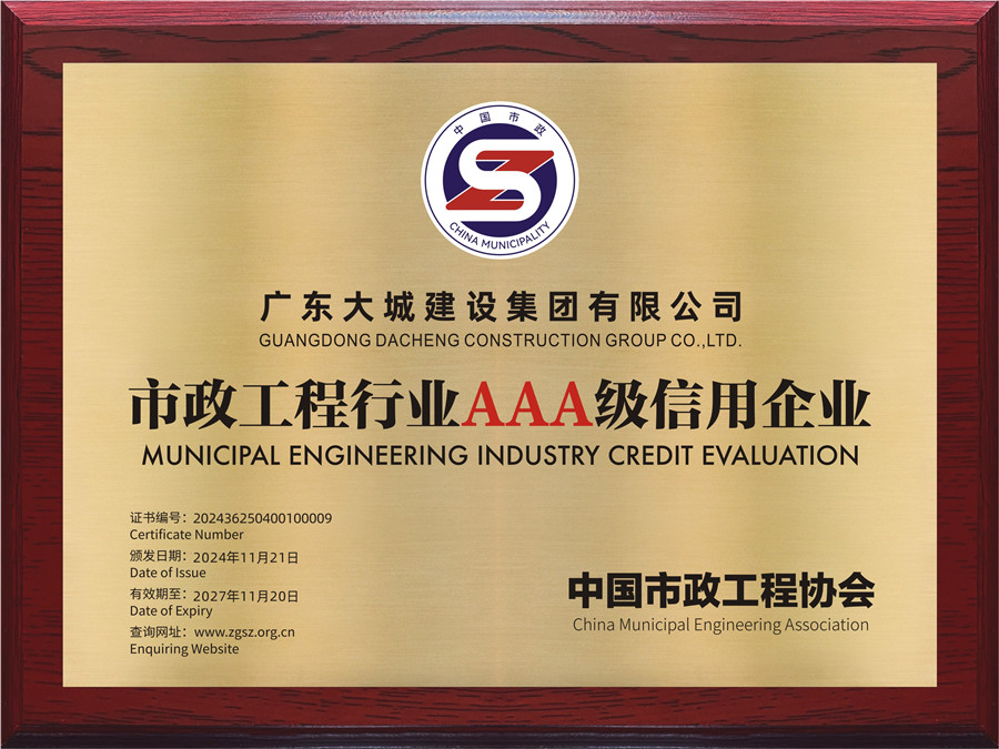 我司首次榮獲“中國(guó)市政工程行業(yè)AAA級(jí)信用企業(yè)”稱(chēng)號(hào)